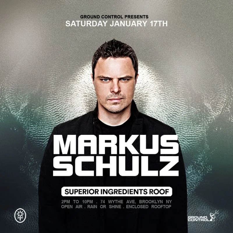 Back to All Events MARKUS SCHULZ Saturday, January 17, 2026 2:00 PM 10:00 PM Superior Ingredients 74 Wythe Avenue Brooklyn, NY, 11249 United States (map) Google Calendar ICS TICKETS TABLE SERVICES This is a 21+ event | Valid ID must be shown at doorFor details on our policies see our FAQ