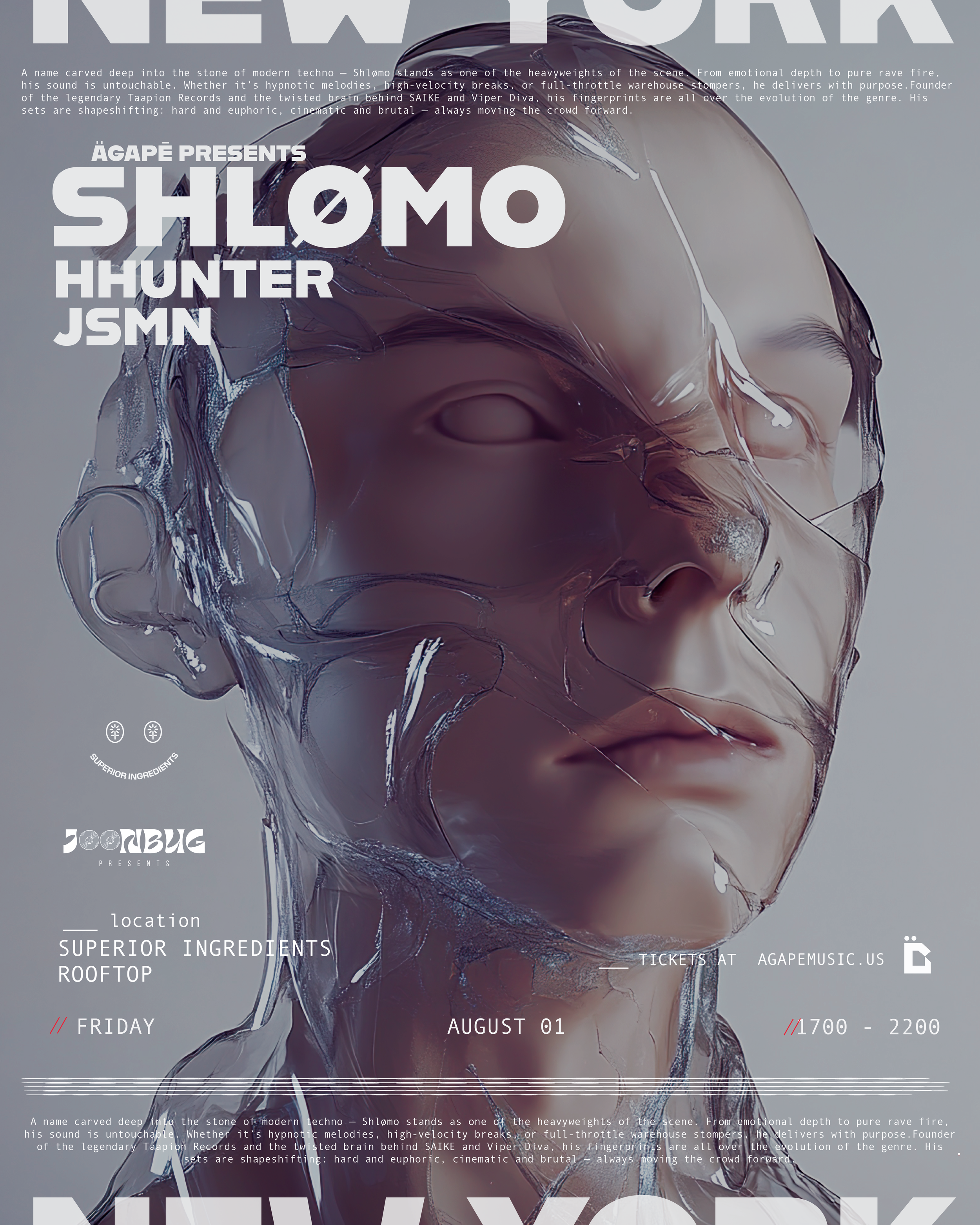 SHLØMO Friday, August 1, 2025 5:00 PM 10:00 PM Superior Ingredients 74 Wythe Avenue Brooklyn, NY, 11249 United States (map) Google Calendar ICS TICKETS TABLE SERVICES This is a 21+ event | Valid ID must be shown at doorFor details on our policies see our FAQ